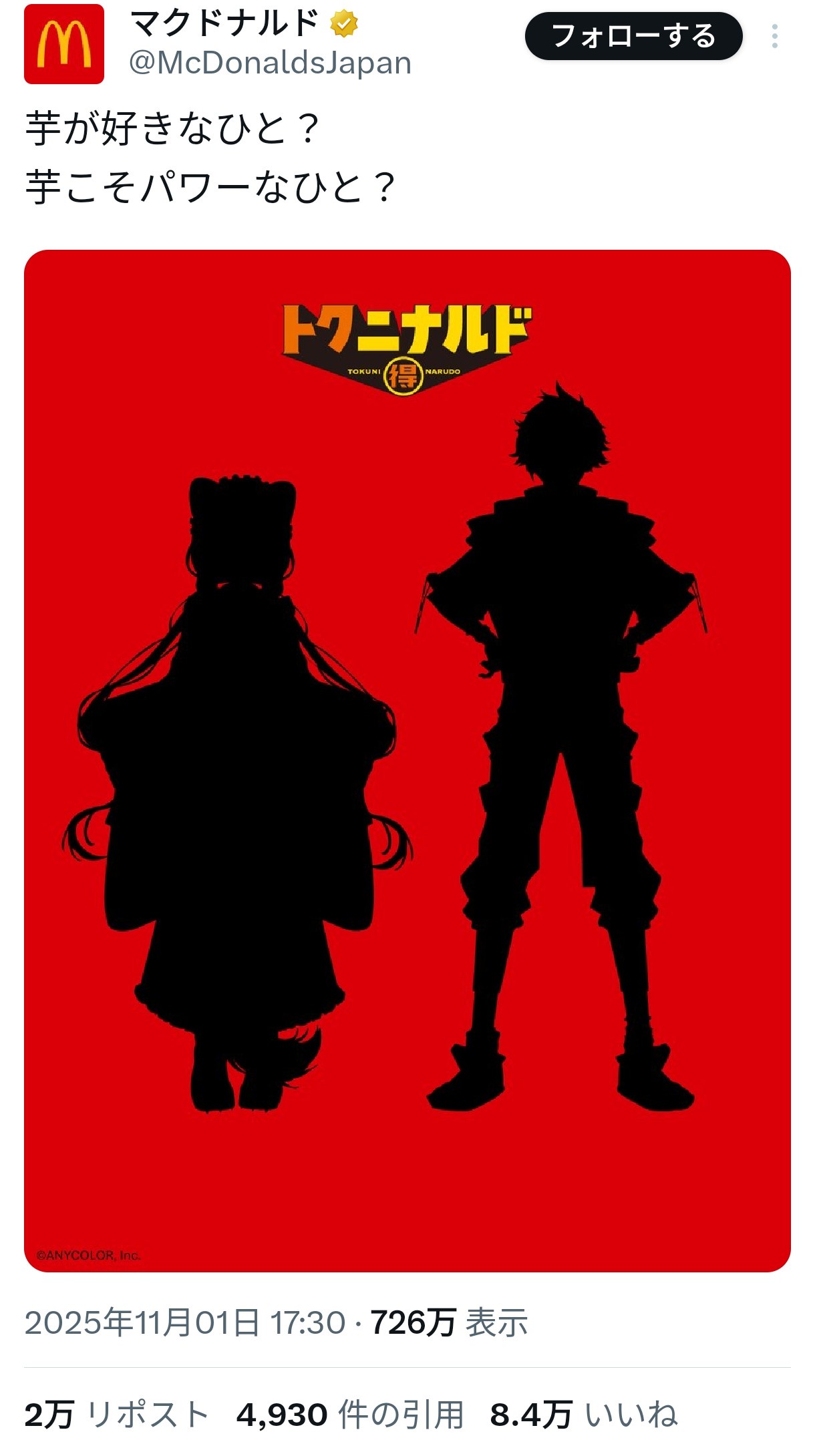 【画像】マクドナルドさん、またまたVtuberとコラボwwwwwwwwwwwwwww