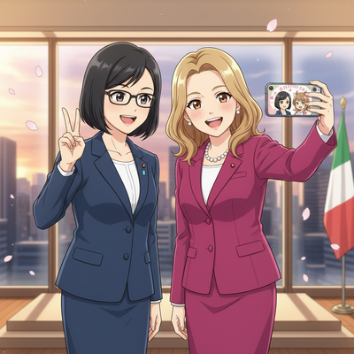 メローニ伊首相、高市首相と笑顔の自撮り2ショット「ますます近く」“アニメ風”加工も披露