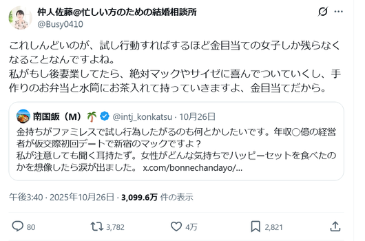女さん「むしろ金目当ての女の方がサイゼで喜ぶ」女性大共感いいねの嵐(※画像あり)