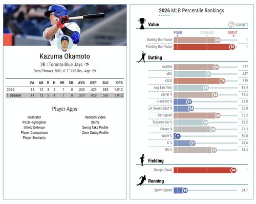 【動画】ブルージェイズ岡本さん、うっかり守備指標MLBトップクラスに躍り出てしまうwwwwwwwwww