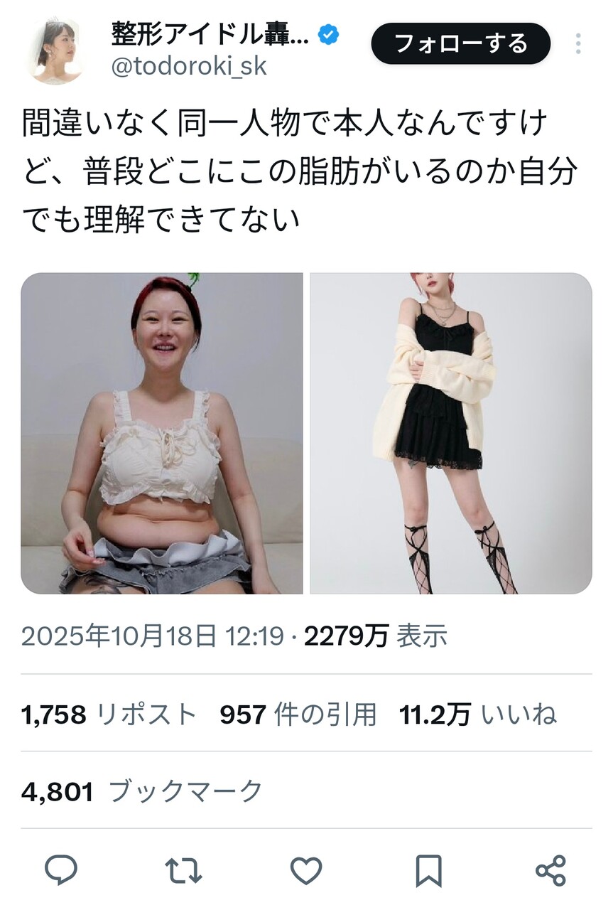【画像】整形を公言している美人アイドル女子さんのすっぴん!