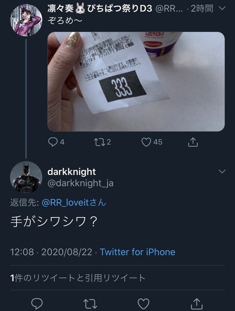 【画像】ダークナイト「手がシワシワ?」
