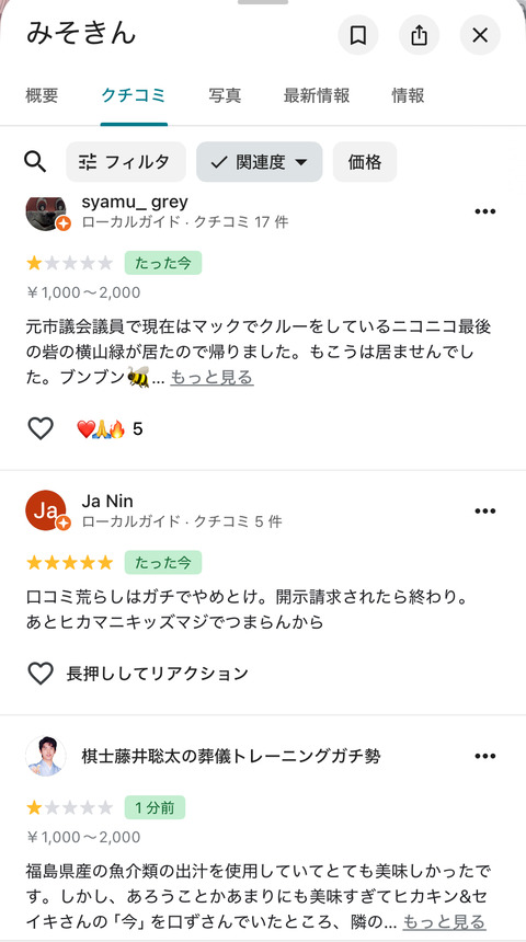 【悲報】ヒカキンのラーメン屋さんの口コミ荒らされて逝く
