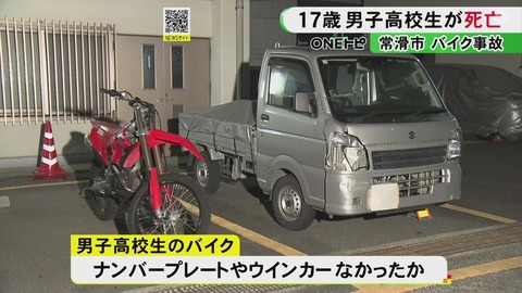 【愛知県常滑市】17歳男子高校生、競技用のHONDA CRF250Rをナンバー無しで公道で乗り軽トラに撥ねられて死亡