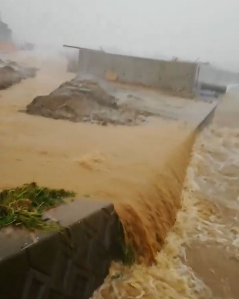 【動画】福津市の女さん、川の氾濫におおはしゃぎ