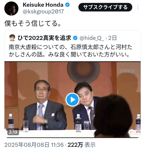 【本田△】ケイスケホンダ「南京大虐殺はなかったと信じてる」→批判殺到→ケイスケホンダ「……」