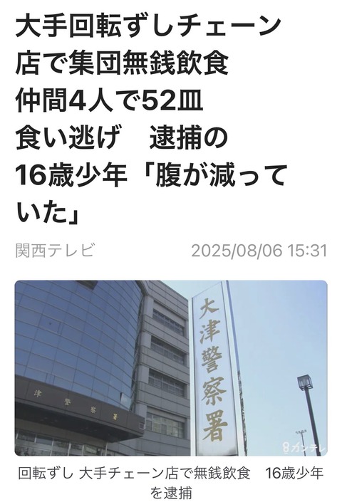 【滋賀】少年4人組が回転寿司52皿を無銭飲食wwww