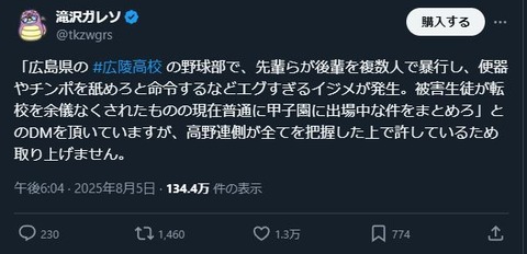 【朗報】広陵高校野球部さん、とうとう滝沢ガレソに見つかってしまうwwwwwww