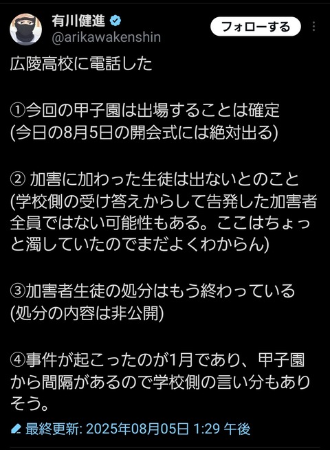 【悲報】広陵高校の絶頂射精加害者生徒、開会式に出ない模様?