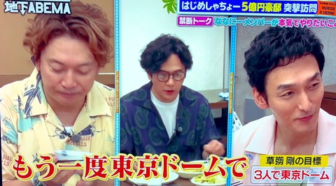 【SMAP】草彅、稲垣、香取「3人で東京ドームに立ちたい」