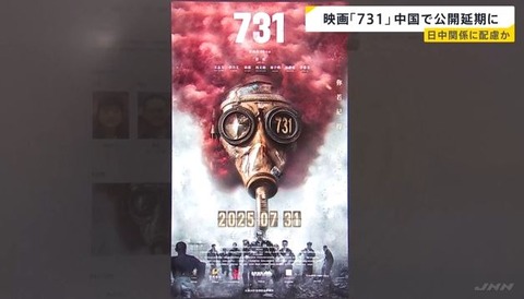 【悲報】中国の超反日映画「731」、日中関係の悪化を警戒し上映中止になるwwwwwwwwwwwwwwwwwwwwwww