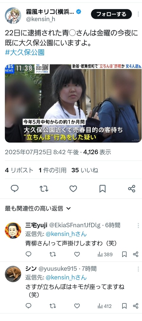 【朗報】立ちんぼ2年で1億円以上稼いだ青柳美結ちゃん20歳、逮捕後も元気に大久保公園で立ちんぼしてると判明