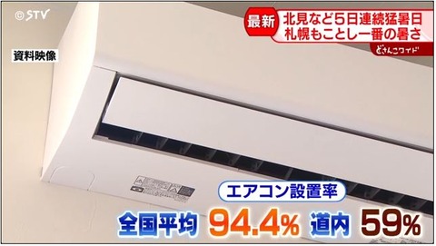 【地獄】北海道、クーラー設置率59%(全国平均94%)しかないので熱中症でお年寄りが自宅でバタバタ倒れる