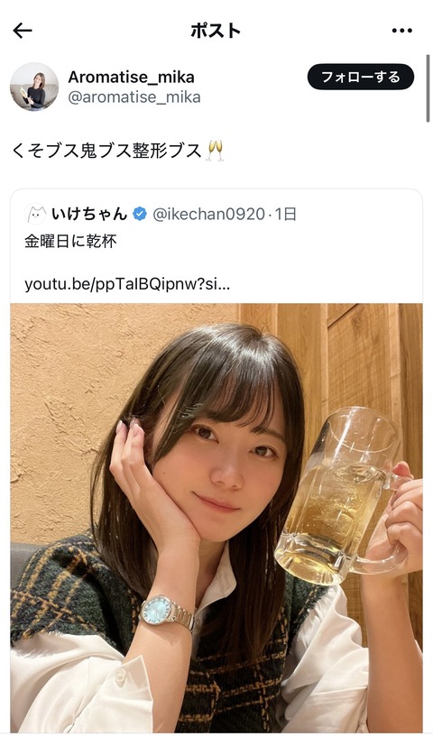 【悲報】箕輪厚介の奥様、いけちゃんに激怒する「くそブス鬼ブス整形ブス?」