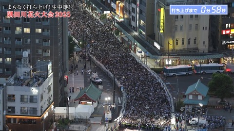 【悲報】隅田川花火大会、もうめちゃめちゃ