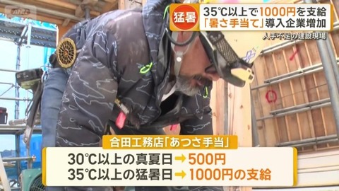 【朗報】建設作業員さん、最高気温35℃以上で支給される『暑さ手当1日1000円』で大喜び