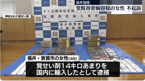 【悲報】覚醒剤14キロを密輸した女さん、不起訴処分へ