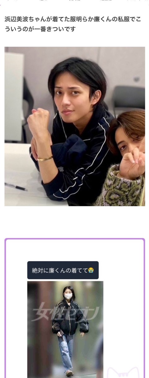【画像】浜辺美波ちゃん(25)、彼ピッピキンプリ永瀬廉の服を着てお出かけしてジャニオタを煽る