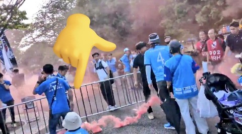 【悲報】Jリーグ(税)、横浜Fマリノスサポーターが発煙筒を子供に投げつけて炎上wwwwwwwwww