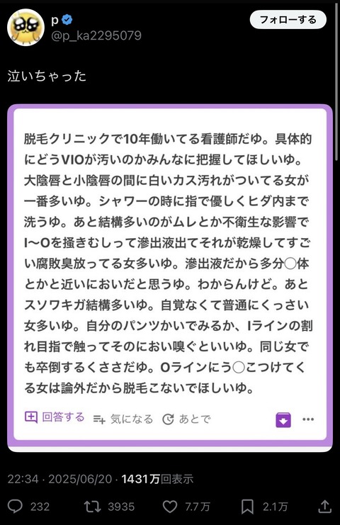 【悲報】脱毛クリニックさん、ブチ切れ「おい女。O脱毛すんのに、肛門に?付けてくんな」