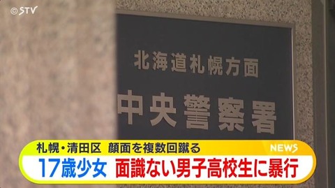 札幌の17歳少女が面識ない男子高校生(15)の顔を何度も蹴って逮捕