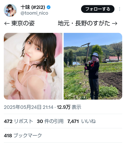 【画像】人気グラドルの「十味」さん、実家に帰省する度に現実を突きつけられるwwwwww