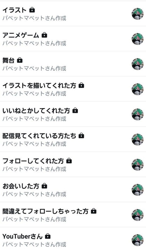 【悲報】パペットマペットさん、Twitterのバグで非公開リストが流出し本性が露わに