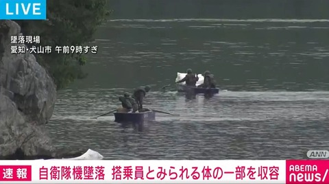 【悲報】入鹿池に墜落した自衛隊機、隊員の「体の一部」発見