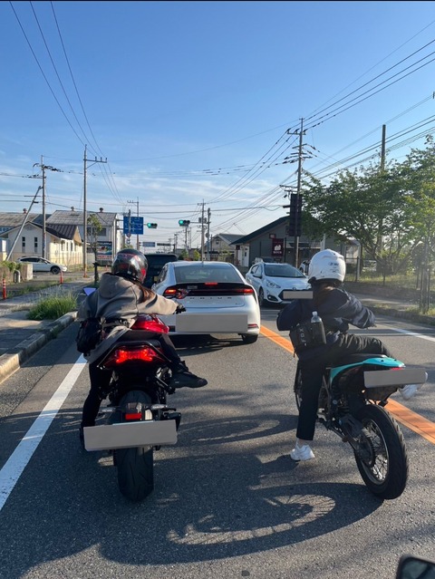 【画像】女ライダーさん、信号待ちで凄いことになってしまう