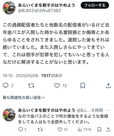 【?報】金バエ嫁「金バエのchメンバーシップ登録してる人は外してください」