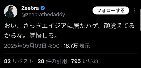 【悲報】有名ラッパーのジブラ「ハゲ、覚悟しろ」