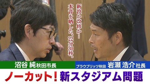 秋田市長がJ2秋田社長と会談「秋田市の貯金は数億円。サカスタ検討するが市の出せる金額にも上限がある
