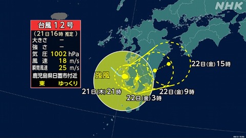 【悲報】隕石騒動のあった鹿児島、台風がほぼ停止状態で居座るwwwwwwwwwwwwwwwwwwwww