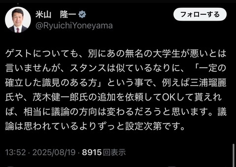 【悲報】令和の論客「米山隆一」さん、Xで公開夫婦喧嘩wwwwwwwwwwww
