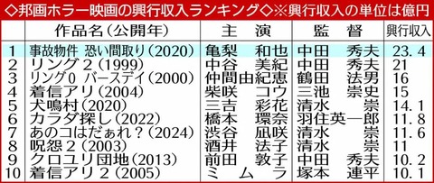 【悲報】日本のホラー映画トップ10、しょぼすぎる