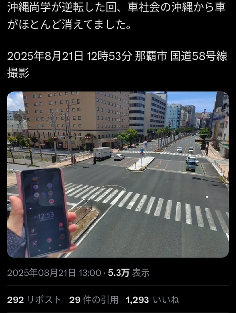 【画像】沖縄人、甲子園の沖縄尚学高校の野球観戦で道路に車がいなくなるWWWWWWWWWWWWWWWW