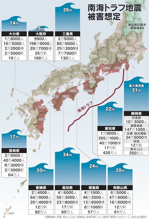 【悲報】南海トラフ地震、ある都道府県だけ死者数の予想がおかしいと話題に