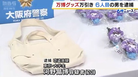 【悲報】大阪万博ミャクミャク万引き大学生グループ、追加で河野晶博容疑者(20)を逮捕