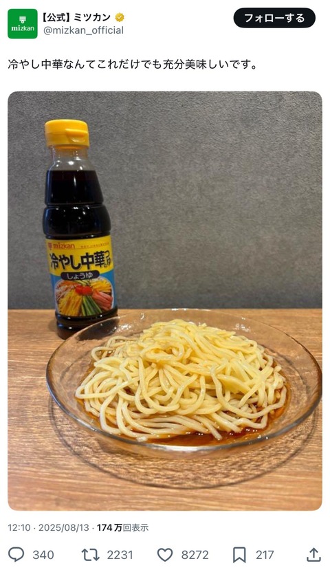 【悲報】「冷やし中華はつゆだけで美味しい」と発言して日本人女性を愚弄したミツカン、謝罪