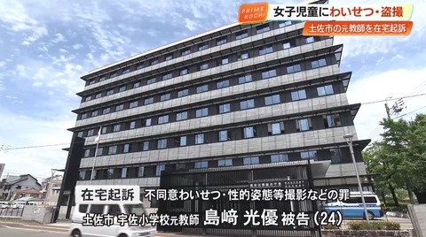 【高知】土佐市の宇佐小学校の元教師・島崎光優被告(24)、女児のパンツを引っ張りカメラをぶっ刺すも何故か盗撮がバレ逮捕…