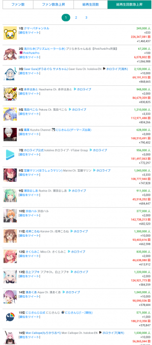 【にじホロまとめ】本日のデイリー再生数貼っときますね