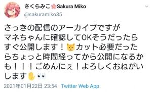 【バーチャル】まつりちゃん出ないのか。理由言ってた?
