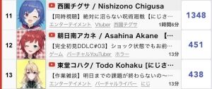 【VTuber】同接の数値は不当に下げられましたが再生数はそのままなので、JPだけでにじさんじ100人に圧勝するようになってきたな