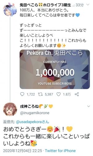 【感想】ぺこちゃん100万人達成してガチ泣き