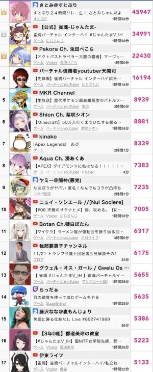【vtuber】葛葉がトップなのは変わらんとしても次は釜山辺りに同接集まるようになるのか?