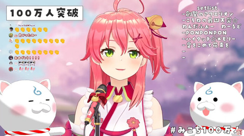 【速報】さくらみこ、Youtube登録者100万人達成!!