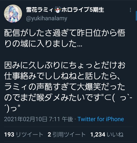 【ホロライブ】ラミィまだ駄目そうです…