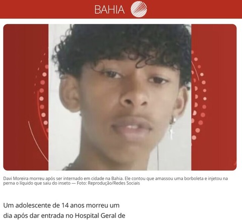 【悲報】ブラジルのガキ、蝶の死骸を静脈に注入して死亡