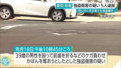 【悲報】Z世代、帰宅途中の警察官殴って大けが負わせ強盗か 5人逮捕 愛知県岩倉市