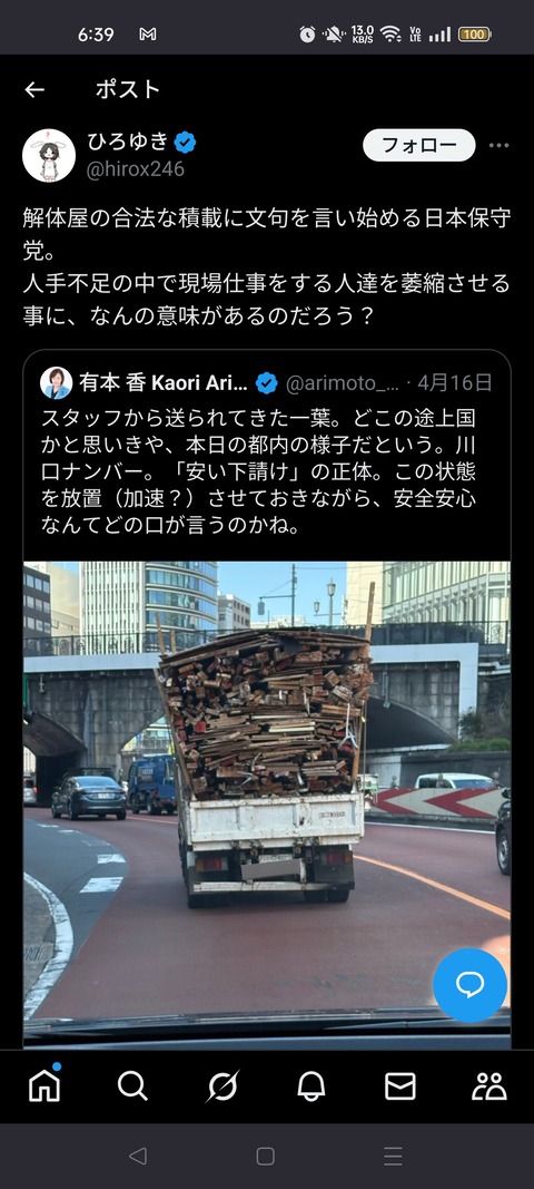 ひろゆき「解体屋の合法な積載に文句を言う日本保守党?」解体屋「…」